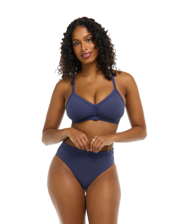 She’s modern, she’s supportive, she’s got the magic touch for a larger bust. She’s Drew, our new fixed triangle bikini top. Available in cup sizes D through F, Drew is designed with removable soft cups for versatility, a wide under-band for enhanced comfort, and an adjustable tie back that provides the support you need – and deserve.