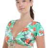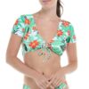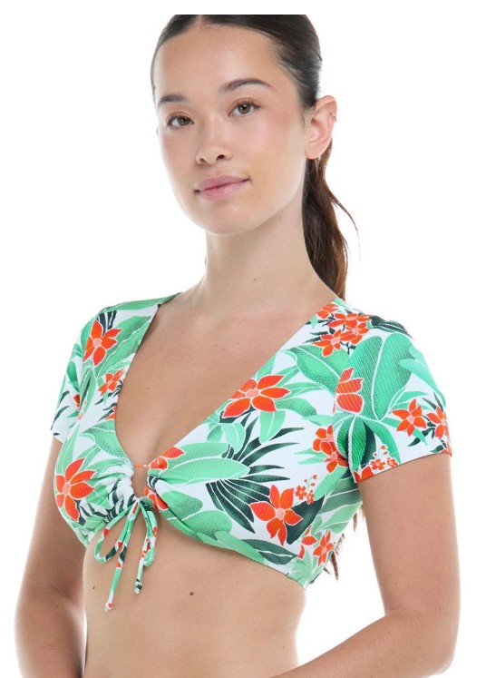 We’ve totally got a crush on this crop: the Sandrine top’s cap sleeves and v-neck are a beach-ready version of your favorite crop top, perfectly pulled together with a pretty tie-front detail at the bust.