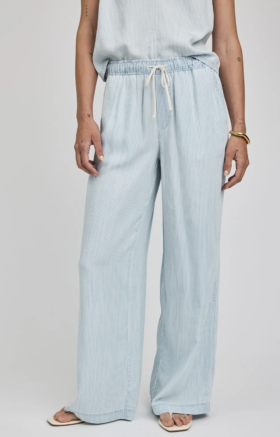 The Camille pant is made of Tencel fabric that has been specially washed to achieve a dimensional look and soft feel. Features include slash pockets and an elasticated waistband with an adjustable drawcord. Complete the look with the Colette tank or Ozzy button down shirt.