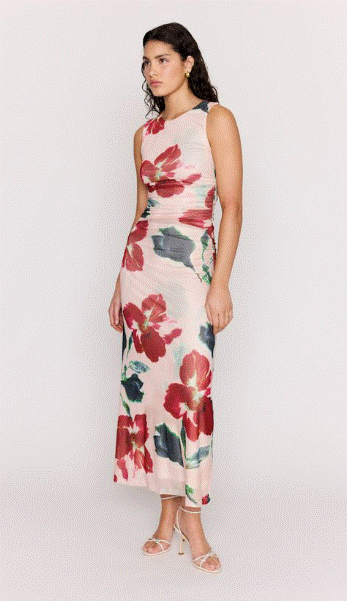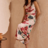 The Arabella Bias Midi Dress features a soft floral print with a flattering bias-cut silhouette that skims the body. Designed with a deep V-neckline and fluid drape, this midi dress moves beautifully and is perfect for summer events, weddings and elevated day-to-night styling.