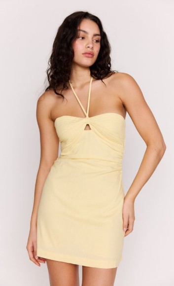 The butter Linen Blend Halter Mini Dress is your after-dark summer staple. Crafted from a breathable linen-viscose blend, this halter mini features soft ruching through the bodice and a subtle cut-out detail for a flattering, sculpted fit. Designed to hug the body without feeling restrictive, it’s finished in a rich chocolate hue that works just as well for sunset drinks as it does for warm nights out.