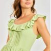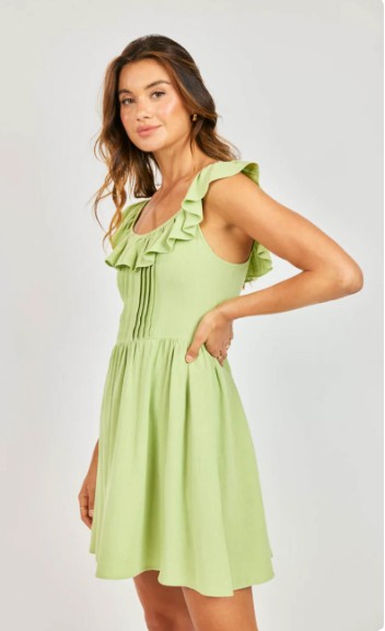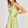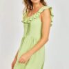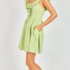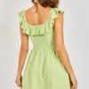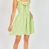 Description:Â this charming mini features a square neckline, puff sleeves, and a softly gathered skirt with a flounced hem for added movement – the open back with an adjustable tie detail adds an unexpected touch of playfulness