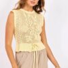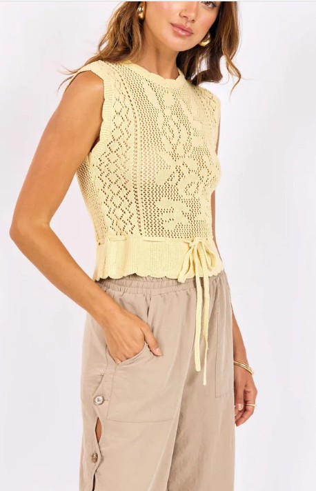 - Design Elements: Floral pointelle knit front panel and a semi-sheer mesh knit back