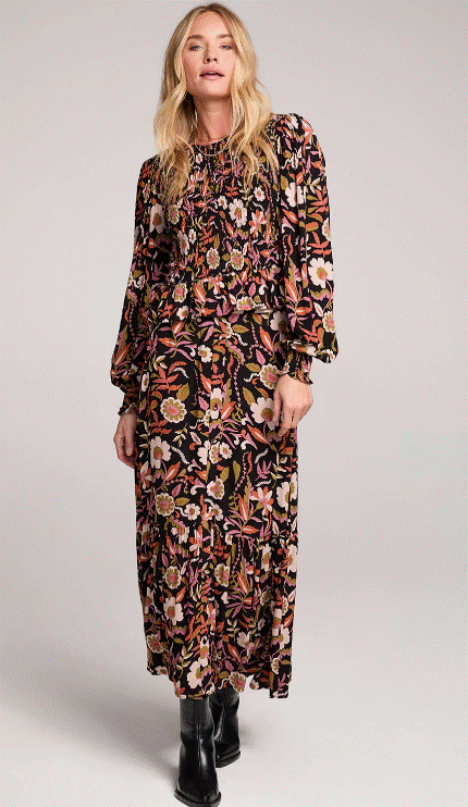 Its moody, romantic dark floral pattern adds depth and elegance, making it a striking piece to pair with our Brielle Top for a sophisticated, cohesive look.