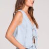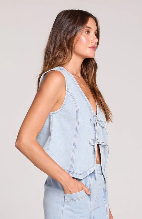 Crafted in classic denim with a charming tie-front closure, this vest adds instant dimension to any outfit.