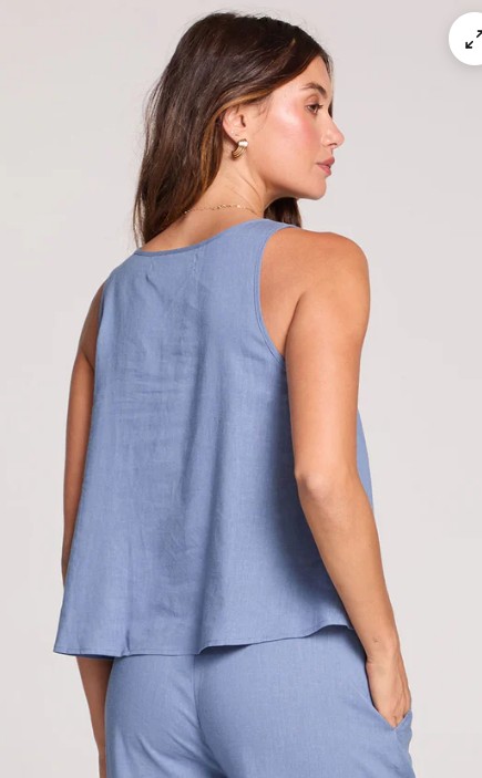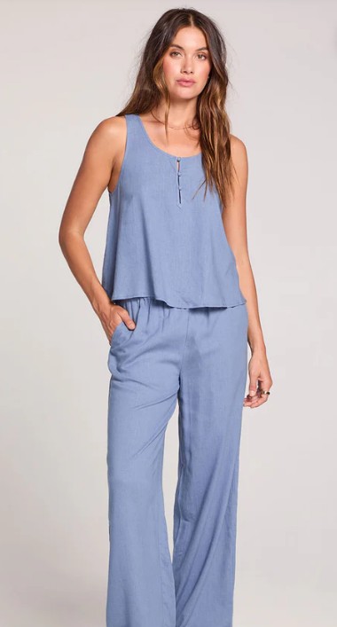 In a versatile worn blue, this tank pairs beautifully with the matching Woven Pull On Pant for a coordinated set, or stands alone layered under sweaters and jackets.