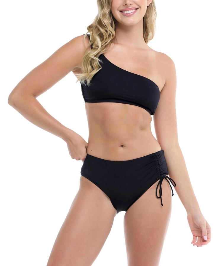 A trendy cinch detail at the hip makes our Alessia bottom one-of-a-kind. Designed with a flattering higher rise, front power mesh for shaping, and luxe shiny fabric, this piece is a bombshell moment in the making. Enjoy fuller coverage for your booty and adjust the cinch to max out your comfort.