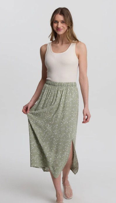 This pull-on printed skirt is made from fibres that are not only silky soft and breathable, but that help reduce waste and water usage in the apparel industry.