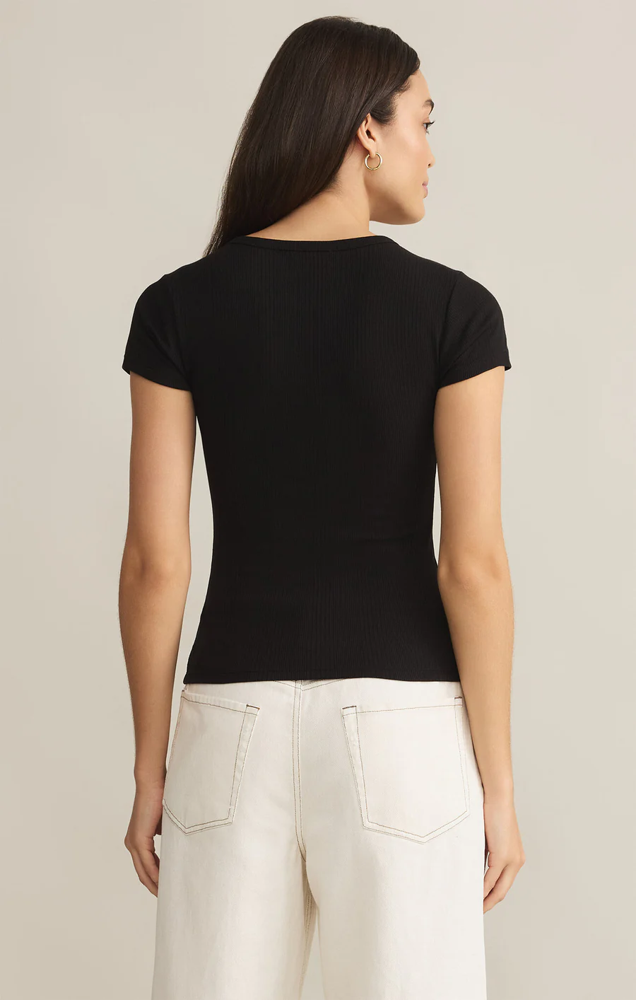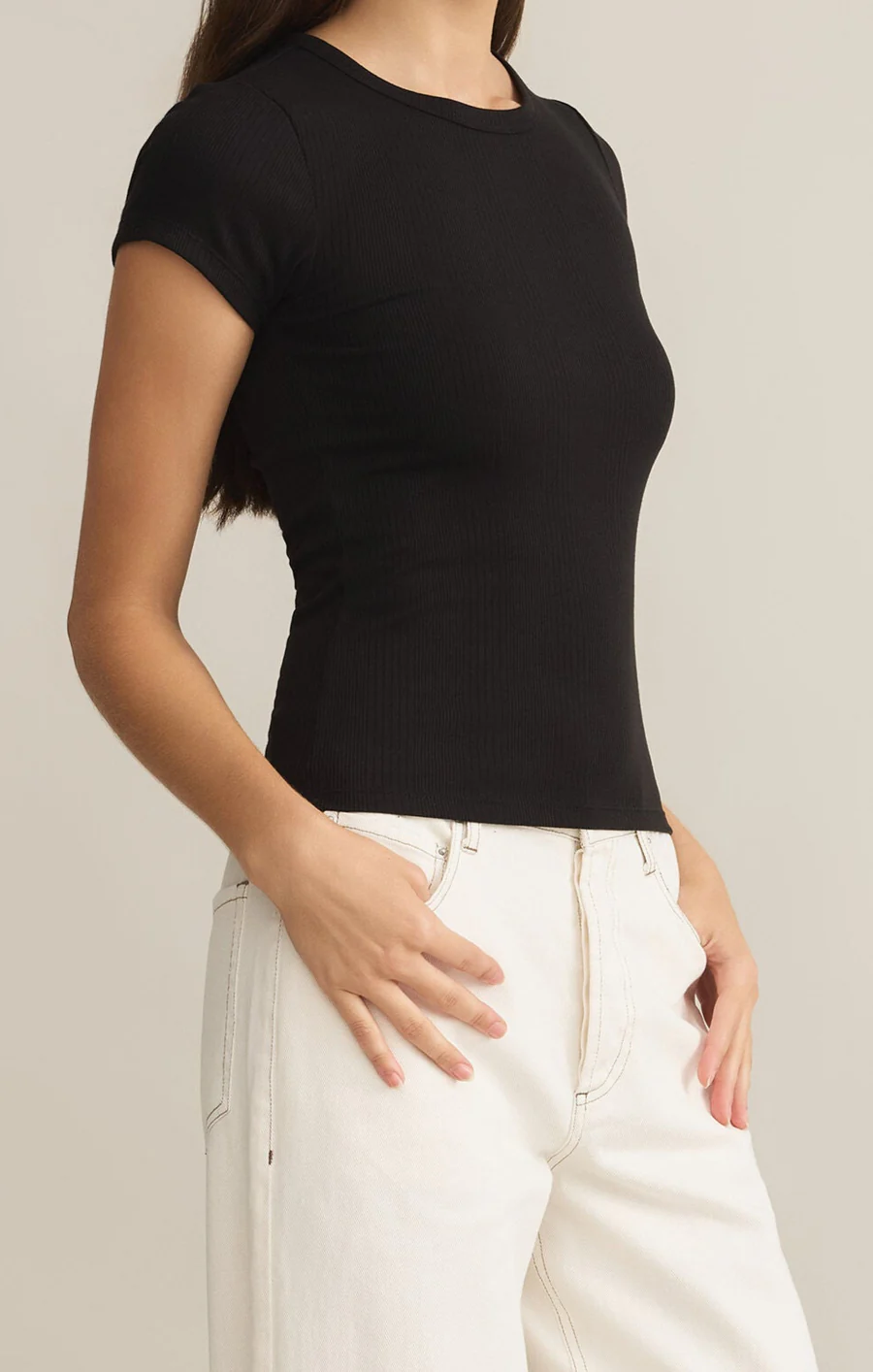 This classic ribbed tee is an essential for any wardrobe, with a comfy crew neckline and a flattering, somewhat fitted design that adds just the right touch of polish. Perfect for layering or wearing solo, this versatile piece can be tucked for a sleek look or worn loose for laid-back days, all season long.
