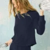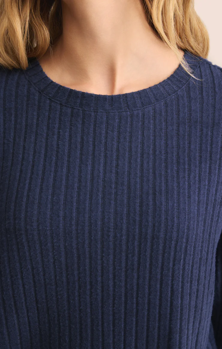 Crafted in silky rib knit, this long sleeve top delivers a smooth, body-skimming fit. Designed for easy layering, it pairs perfectly with matching bottoms or your favorite lounge pants.