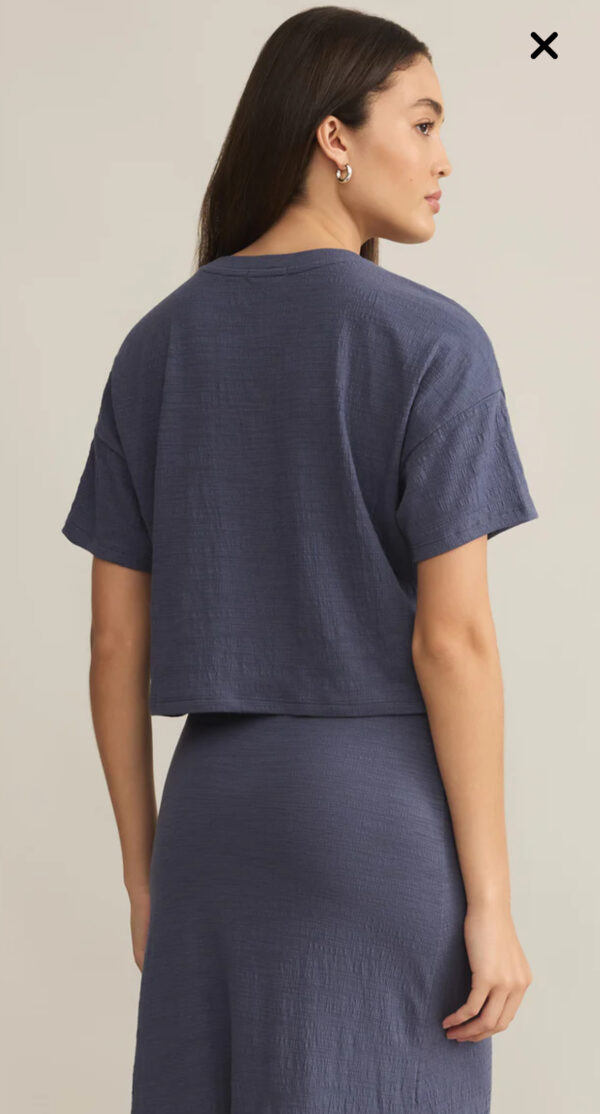 This cropped crewneck tee is all about texture and flow, with drapey, relaxed sleeves and slub knit fabric. A laid-back essential for a relaxed, off-duty vibe.