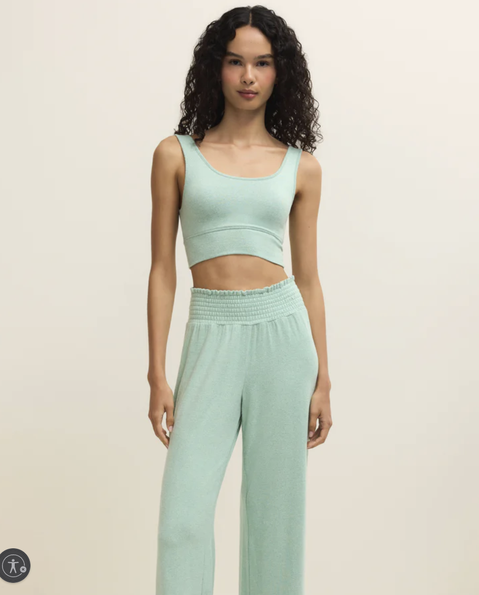 This popular tank bra features our brushed silky jersey fabric, light support, comfortable wide straps, and a classic scoop neck. Love a matching set? We recommend wearing it with the Dawn Smocked Pant.